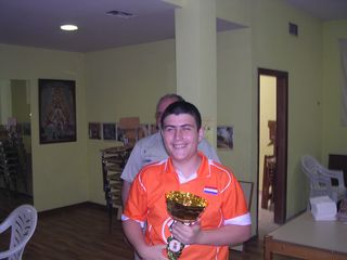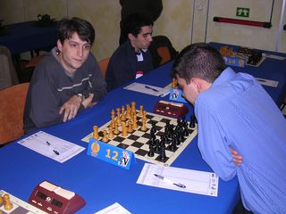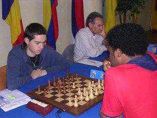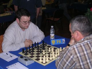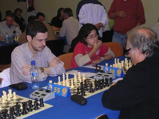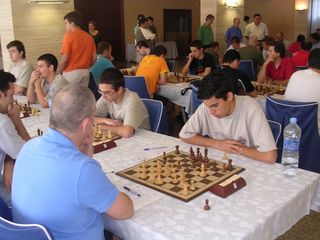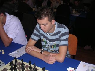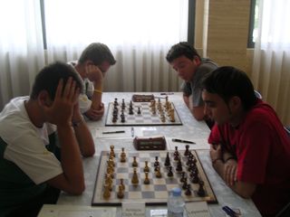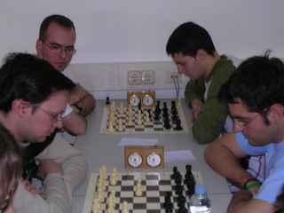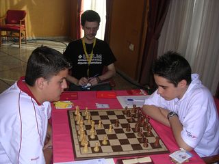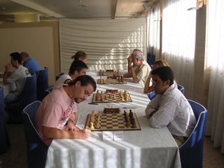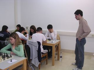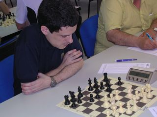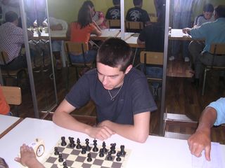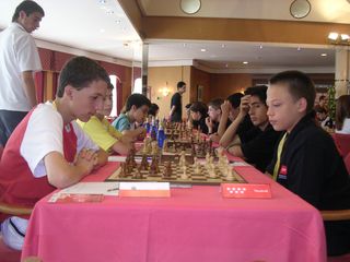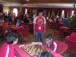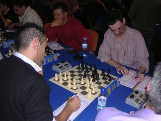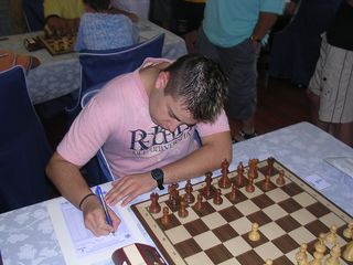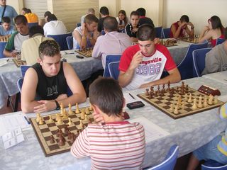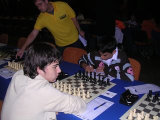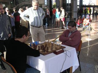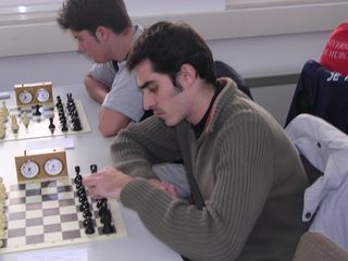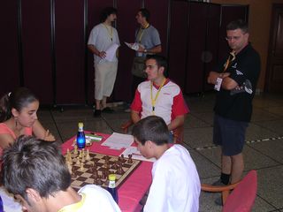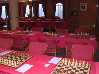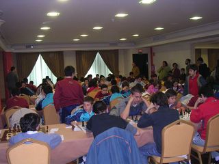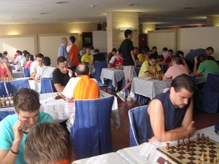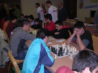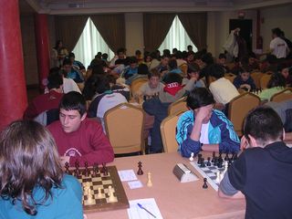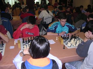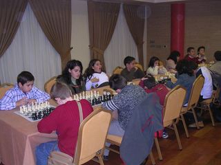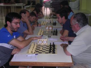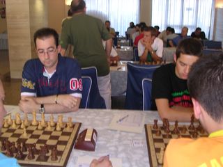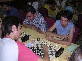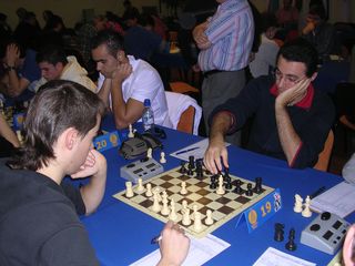 Hoy empezó el Festival de Nuevas Generaciones en una sala de la entreplanta del Hotel Bali, entre los inscritos cabe reseñar la presencia de David Gil, Santiago Talavera y los hermanos Ontañón. Un torneo en el que juegan unas 80 promesas sobre todo de la Comunidad Valenciana. En cuanto a los openes de aficionados poca suerte hoy para los castellanomanchegos. Mañana esperemos que la 6 ronda traiga agradables resultados. En la ronda de hoy David teniendo una posición bastante sana un error le ha llevado a la derrota y Cañizares teniendo la partida ganada comete un error y aun asi habia una combinación que le daba tablas y al final pierde.