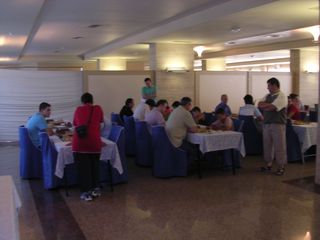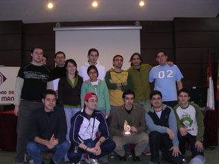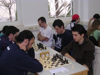 | Amaneció el último día del Campeonato de España para unos antes que para otros. La noche otra vez fue movidita pues había que aprovechar las pocas horas que quedaban de esta edición. La mañana como siempre Miguel, Pablo y yo depsiertos a las 8 de la mañana para bajar a desayunar y marchar a la sala de juego. El resto reposando un poco hasta la hora de coger el metro. El objetivo estaba claro, superar los 15 puntos que a falta de una ronda se acumulaban en nuestro marcador y las opciones de superarlo eran muy muy claras puesto que para coger a los 3 que puntuaban teníamos 3 jugadores con 5 puntos y dos con 4.5. Llegamos a la sala de juego la avanzadilla del equipo con mas tiempo que ningún otro dia. A las 10 en punto comienza la ronda y aún faltaban 3 por presentarse. A las 10:15 llamo por teléfono a Victor y entre mucho ruido le oigo que estaba en el metro. Llego las 10:30 y por culpa del tráfico, el sueño o no se que el equipo se presentó en la última ronda con solo dos jugadores. Cabe destacar que gracias a la victoria en la última ronda de Miguel Ángel sobre la WIM Patricia Llaneza se logró alcanzar y superar el listón de los 15.5 llegando a los 16. Por lo demás poco que reseñar la entrega de premios, aperitivo en la cafetería de la Universidad Pontificia y cafelito en un Dunkin Donuts para despedir el evento. Otro año mas para contarle a los nietos.