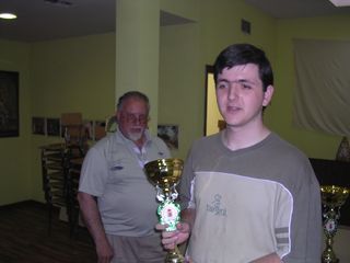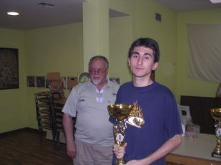 | Se celebró ayer el clásico Memorial Pedro Casero en Tomelloso. Un sistema suizo de partidas de 25 minutos y 7 rondas después de las cuales resultó vencedor por segundo año consecutivo el talaverano Carlos García con un punto de diferencia al segundo clasificado. Los 5 primeros puestos quedaron de la siguiente forma: 1. Carlos García 6.5 puntos | ||||||||||||||||